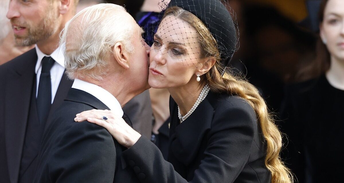 Même les occasions les plus solennelles ont des moments de soulagement léger, et les funérailles de la duchesse de Kent ne faisaient pas exception. Alors que le prince et la princesse de Galles sont arrivés mardi pour rendre hommage à la cathédrale de Westminster, le couple a rencontré le père Slawomir Witon, avant la messe du requiem. Alors que la future reine secoua la main du prêtre, une partie de ses vêtements a soufflé dans son visage, que vous pouvez voir dans la vidéo ci-dessus. Pour la cérémonie, Kate portait un ensemble respectueux qu’elle portait auparavant aux funérailles de feu le prince Philip. Le Roland Mouret Coatdress comportait un arc ornant le décolleté et une rangée de boutons couverts sur le devant.