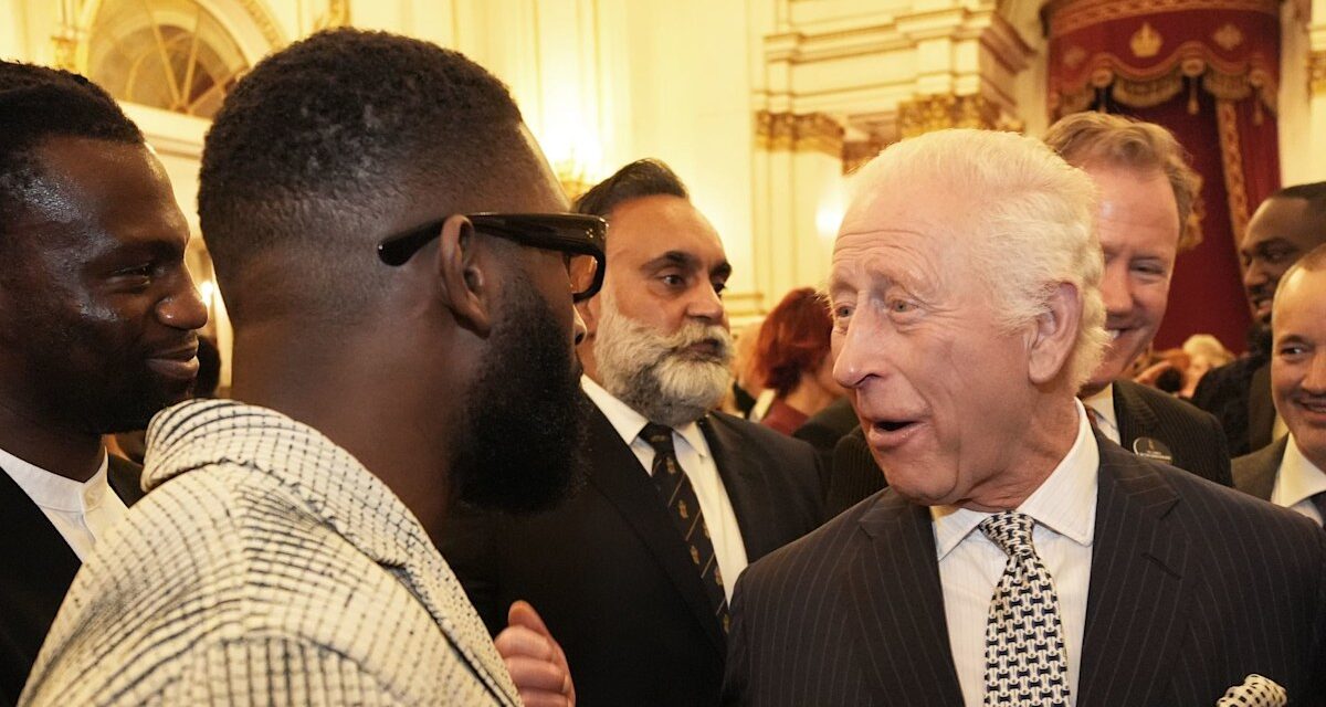 Le roi Charles discute avec le musicien Tinie Tempah